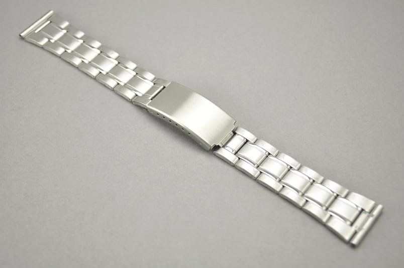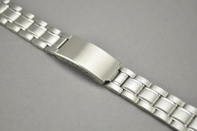 Stalowa, cienka bransoleta wykonana ze składanych ogniw. Satynowa z delikatnymi polerowanymi paseczkami. Regulowany zamek. Ogniwa skracane na sztyfty.