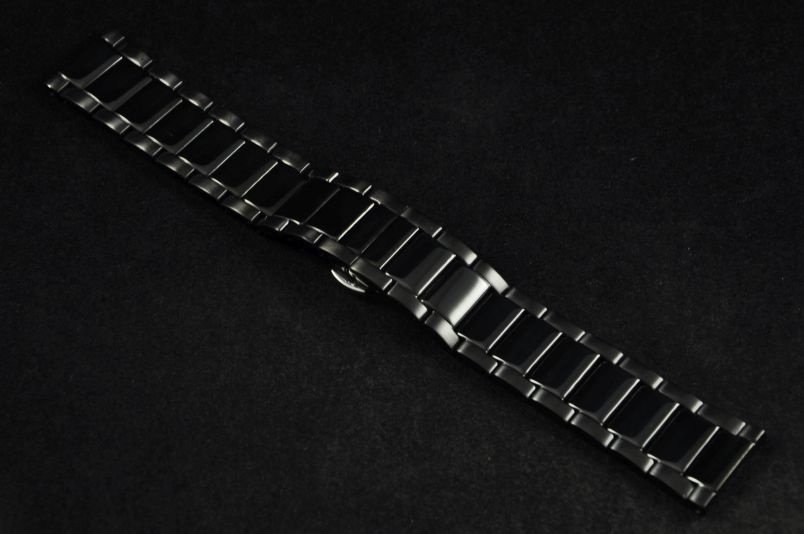 Stalowa, solidna, dość masywna bransoleta z prostym mocowaniem szerokości 21mm. Bransoletka o klasycznym wzorze - środek ogniwa błyszczące, boki satynowe. Zapięcie motylkowe na przycisk. Ogniwa skracane na sztyfty.