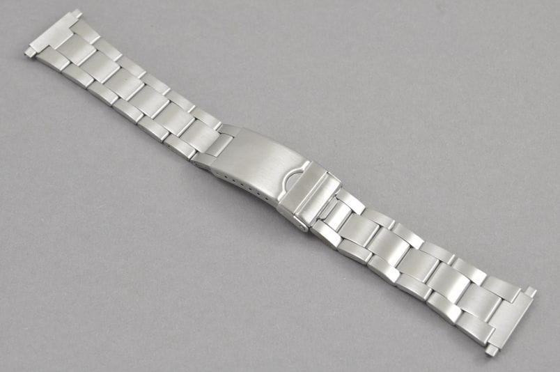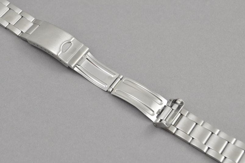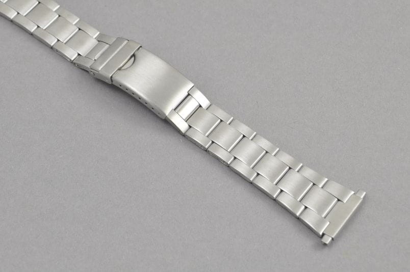 Stalowa, satynowa bransoleta w fasonie Oyster z uniwersalnym zakończeniem szerokości 18-23mm. Ponadczasowy wzór . Regulowany zamek z zabezpieczeniem, ogniwa skracane na sztyfty.Idealna do zegarków z mocowaniem 19mm.