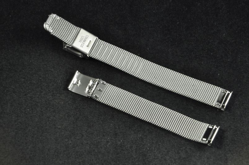 Stalowa bransoletka typu mesh. Delikatna siateczka o drobnym splocie, ładnie układająca się na ręku. Regulowana długość. Dodatkowe zabezpieczenie zapięcia.