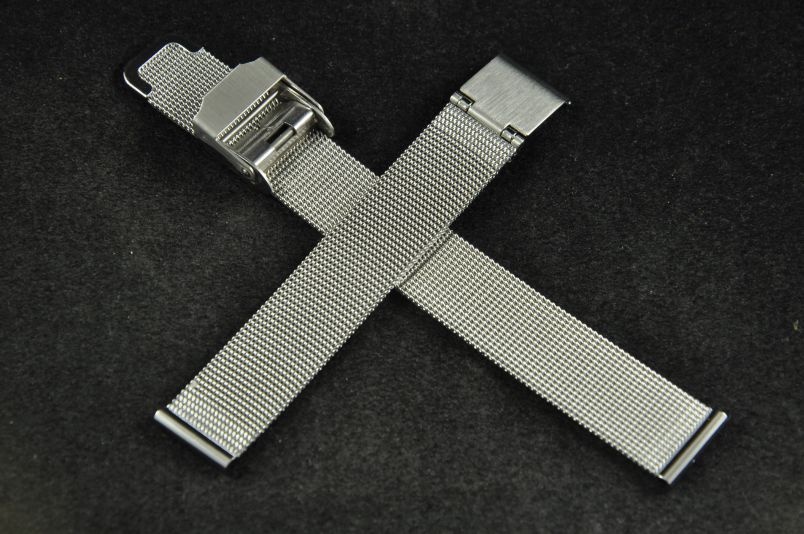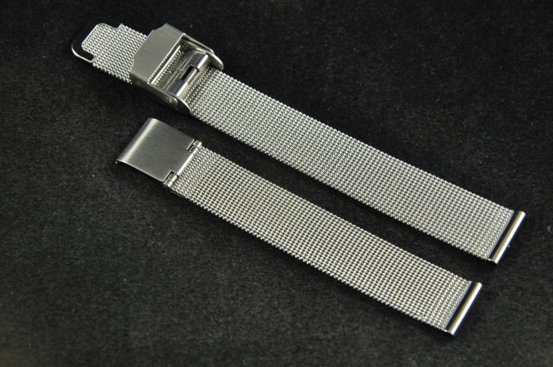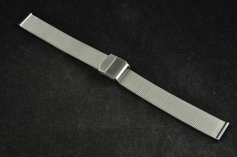 Stalowa bransoletka typu mesh. Delikatna siateczka, ładnie układająca się na ręku. Regulowana długość. Równoległy fason. Zamek z zabezpieczeniem.