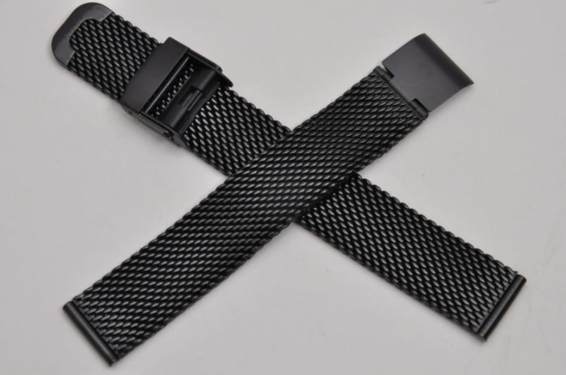 Bransoletka mesh gruba, Stalowa, Czarna, 16mm