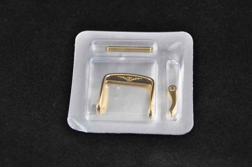 Oryginalna klamerka firmy Longines. Wykonana z wysokiej jakości stali nierdzewnej. Kolor klamerki - złoty, powlekana metodą PVD. Szerokość 20mm. Widoczne logo Longines.
