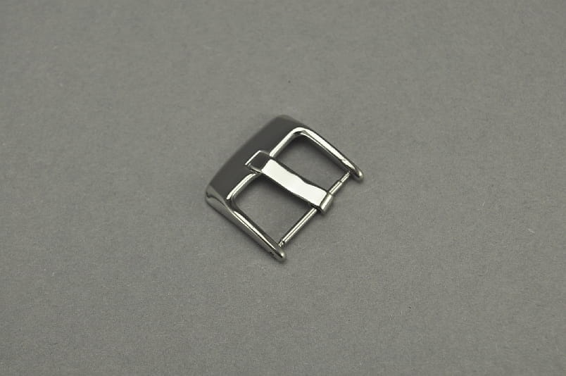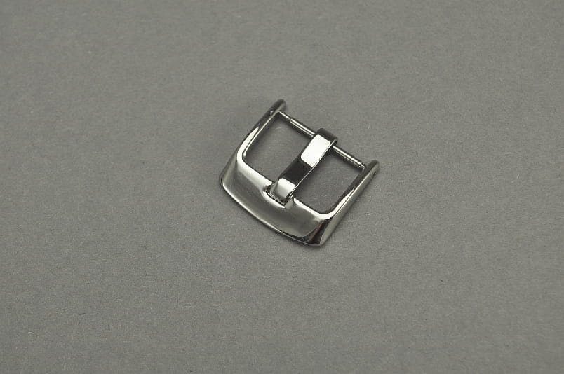 Klamerka do paska. Stalowa, masywna (w najszerszym miejscu 8mm) z szerokim, 4mm językiem. Dobrze wygląda na grubym pasku ( także z prostokątnymi dziurkami) przy okazałym, sportowym zegarku.