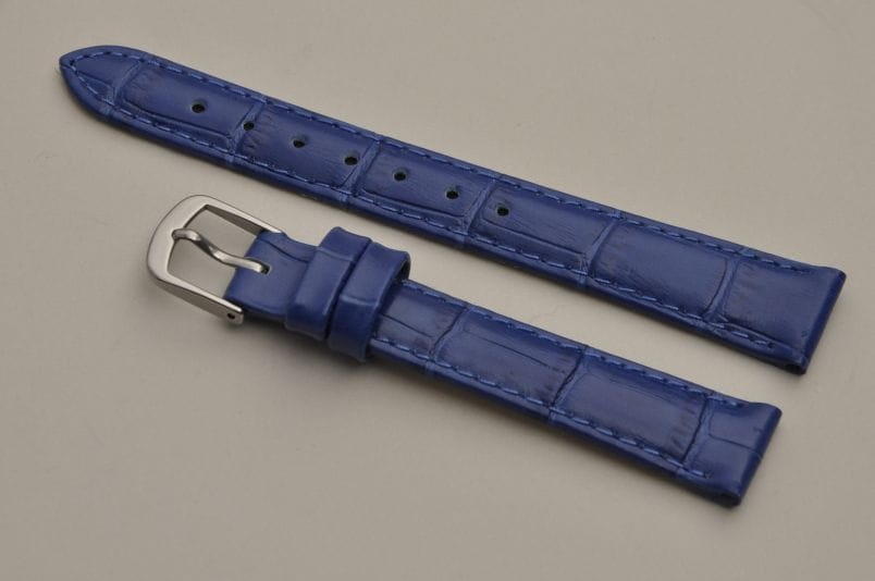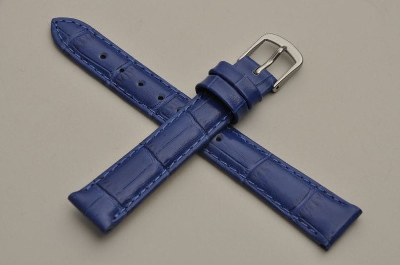 Wykonany z naturalnej skóry, imitacja skóry aligatora. Lekki połysk, przeszyty nicią w kolorze paska. Płaski, miękki pasek. Skórzana futrówka. Podwójna szlufka. Stalowa klamerka.