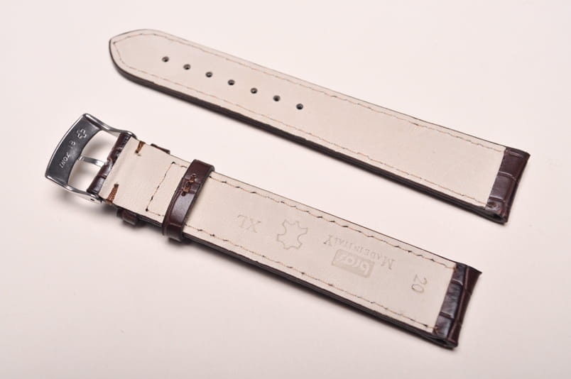 Wykonany ze skóry naturalnej tłoczonej na wzór skóry aligatora. Matowy. Obszyty nicią w kolorze paska. Podwójna szlufka. Stalowa klamerka. Grubość paska 4mm. Bardzo dobrze komponuje się z większymi zegarkami zarówno klasycznymi jak i sportowymi. Wersja XL.