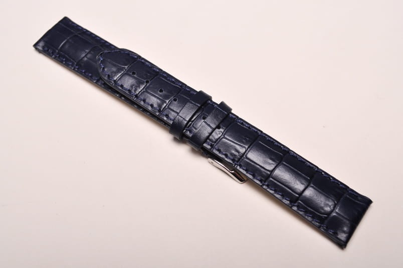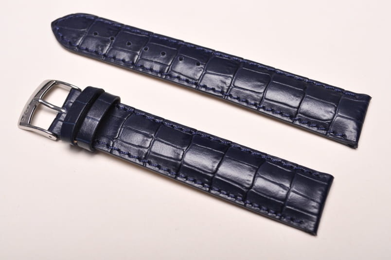 Wykonany ze skóry naturalnej tłoczonej na wzór skóry aligatora. Matowy. Obszyty nicią w kolorze paska. Podwójna szlufka. Stalowa klamerka. Grubość paska 4mm. Bardzo dobrze komponuje się z większymi zegarkami zarówno klasycznymi jak i sportowymi. Wersja XL.