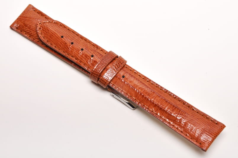 Pasek włoskiej firmy Bros. Ręcznie szyty z naturalnej skóry warana. Delikatnie pogrubiany. Brzegi paska cięte. Błyszczące wykończenie skóry. Obszycie pod kolor paska. Do eleganckich i klasycznych zegarków.