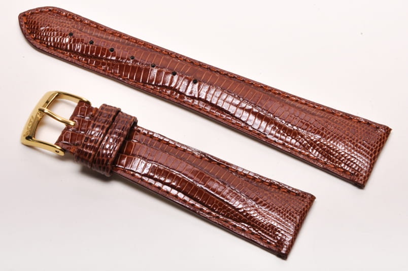 Pasek włoskiej firmy Bros. Ręcznie szyty z naturalnej skóry warana. Delikatnie pogrubiany. Brzegi paska cięte. Błyszczące wykończenie skóry. Obszycie pod kolor paska. Do eleganckich i klasycznych zegarków.