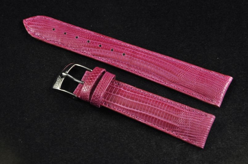 Pasek włoskiej firmy Bros. Ręcznie szyty z naturalnej skóry warana. Delikatnie pogrubiany. Brzegi paska cięte. Błyszczące wykończenie skóry. Obszycie pod kolor paska. Do eleganckich i klasycznych zegarków.