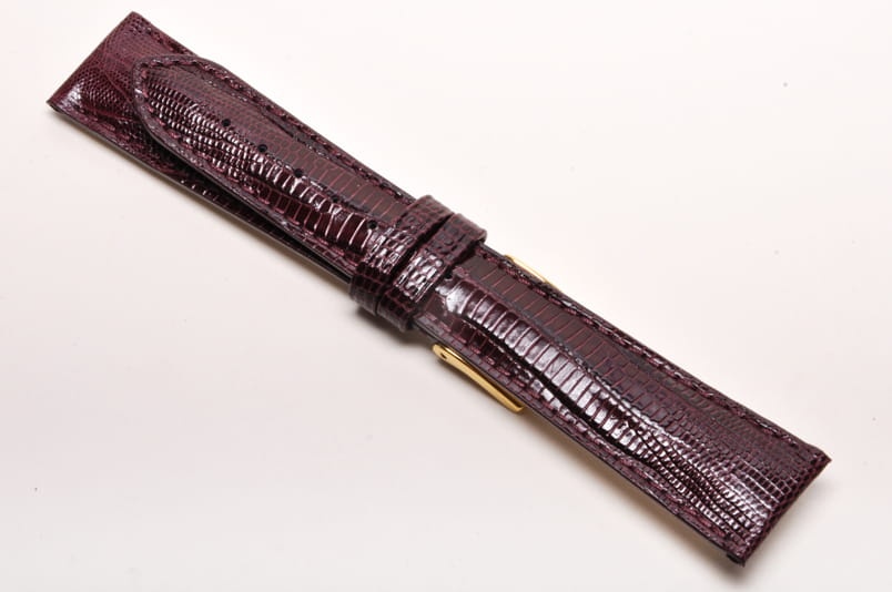 Pasek włoskiej firmy Bros. Ręcznie szyty z naturalnej skóry warana. Delikatnie pogrubiany. Brzegi paska cięte. Błyszczące wykończenie skóry. Obszycie pod kolor paska. Do eleganckich i klasycznych zegarków.
