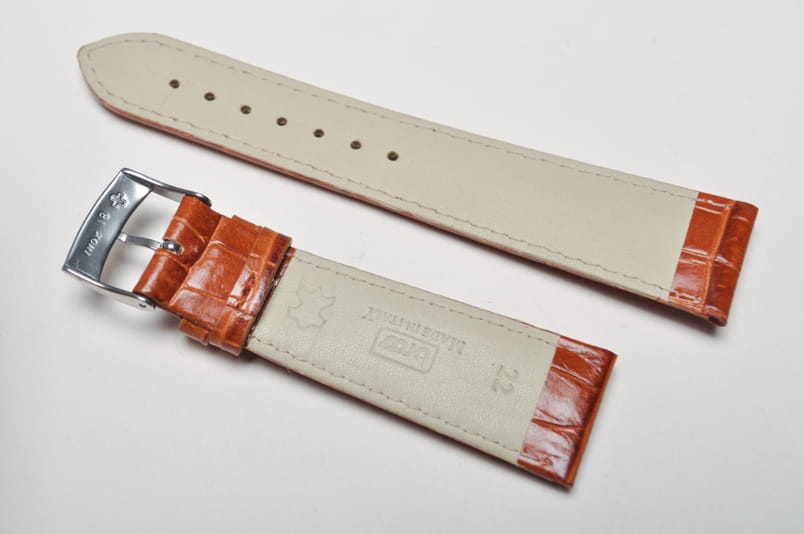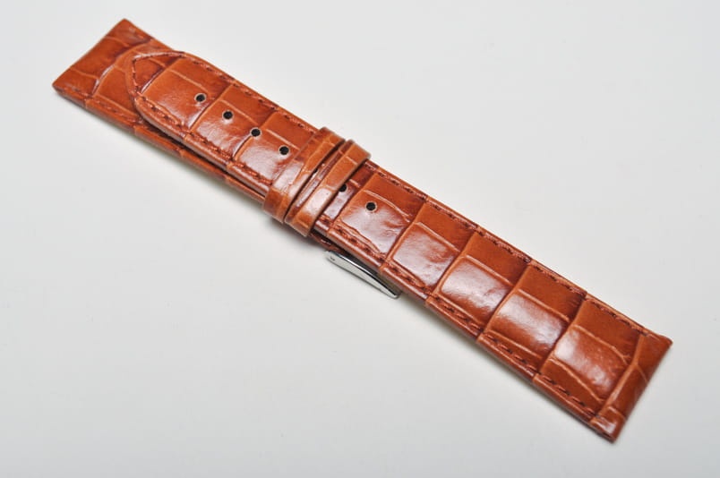 Wykonany ze skóry naturalnej tłoczonej na wzór skóry aligatora. Lakierowany z połyskiem. Delikatnie pogrubiany do 4mm. Obszyty nicią w kolorze paska. Podwójna szlufka. Stalowa klamerka. Klasyczny, elegancki pasek.