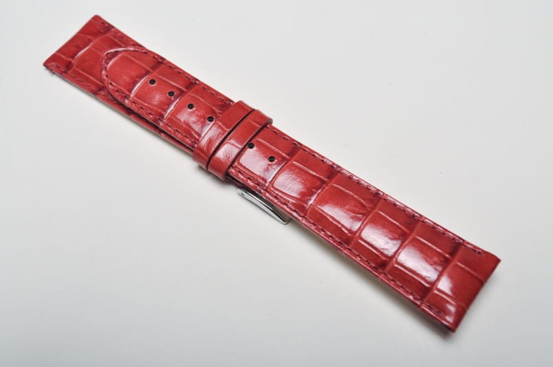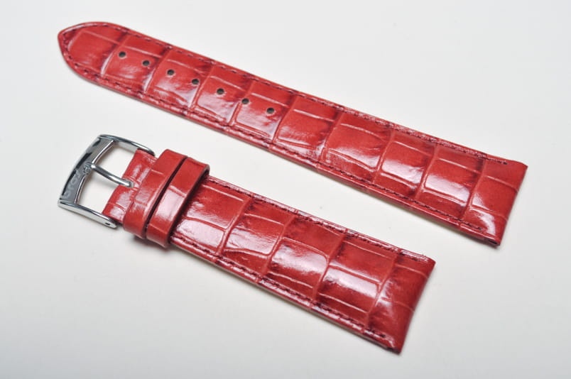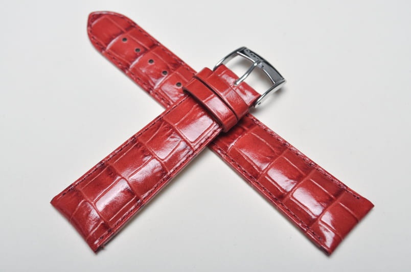 Wykonany ze skóry naturalnej tłoczonej na wzór skóry aligatora. Lakierowany z połyskiem. Delikatnie pogrubiany do 4mm. Obszyty nicią w kolorze paska. Podwójna szlufka. Stalowa klamerka. Klasyczny, elegancki pasek.