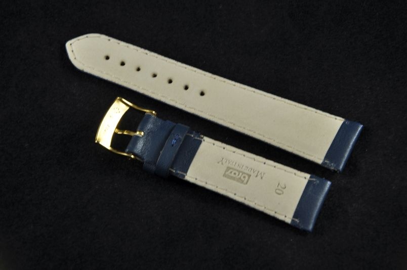 Oryginalny pasek włoskiej firmy Bros. Wykonany z naturalnej skóry. Matowy, gładki. Przeszywany nicią w kolorze paska. Pogrubiany przy zegarku do 5mm, przy zapięciu 4mm grubości. Podwójna szlufka, stalowa klamerka.