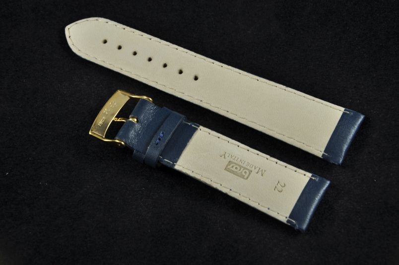 Oryginalny pasek włoskiej firmy Bros. Wykonany z naturalnej skóry. Matowy, gładki. Przeszywany nicią w kolorze paska. Pogrubiany przy zegarku do 5mm, przy zapięciu 4mm grubości. Podwójna szlufka, stalowa klamerka.