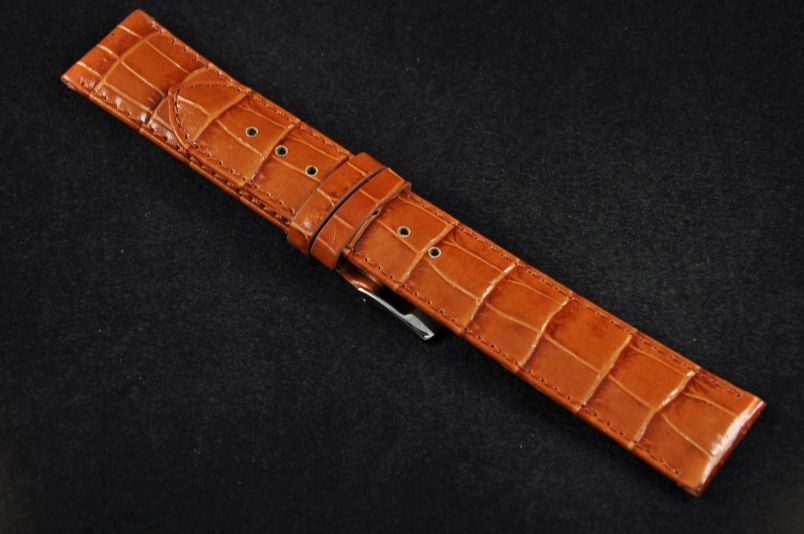 Wykonany ze skóry naturalnej tłoczonej na wzór skóry aligatora. Lakierowany z połyskiem. Delikatnie pogrubiany do 4mm. Obszyty nicią w kolorze paska. Podwójna szlufka. Stalowa klamerka. Klasyczny, elegancki pasek.