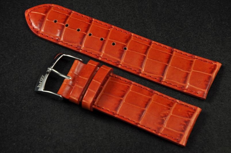 Pasek Bros 7446, Skóra naturalna, Pomarańczowy, 22mm