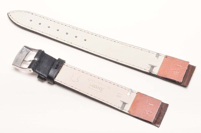 Specjalne mocowanie do zegarków ze stałym uchem (brak teleskopów). Wzmacniane blaszką, podwójnie zaklejane końce. Wykonany z gładkiej, matowej skóry. Przeszycie w kolorze paska. Podwójna szlufka, stalowa klamerka. Do wiekowych oraz markowych złotych zegarków.