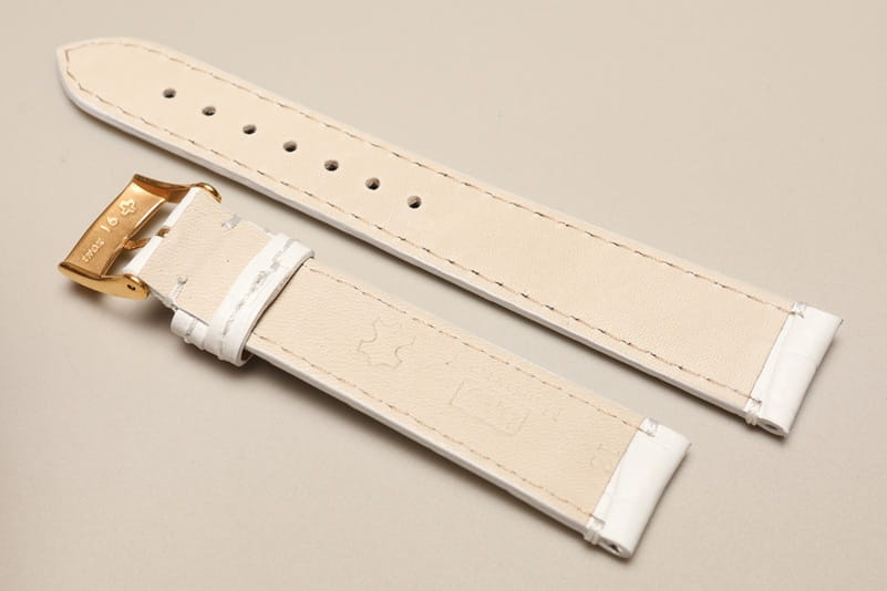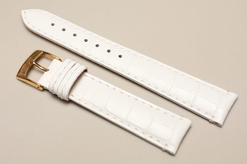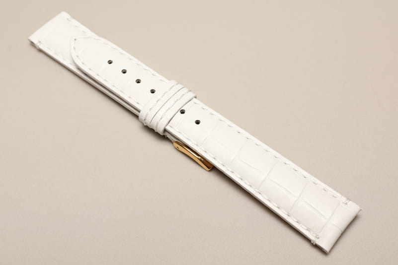 Wykonany ze skóry naturalnej tłoczonej na wzór skóry aligatora. Matowy. Obszyty nicią w kolorze paska. Podwójna szlufka. Stalowa klamerka. Grubość paska 3mm. Bardzo dobrze komponuje się z większymi zegarkami zarówno klasycznymi jak i sportowymi.