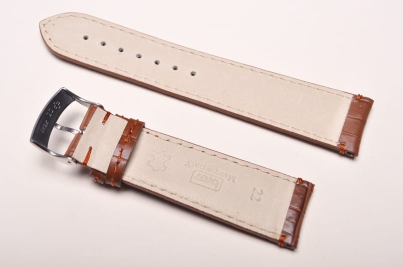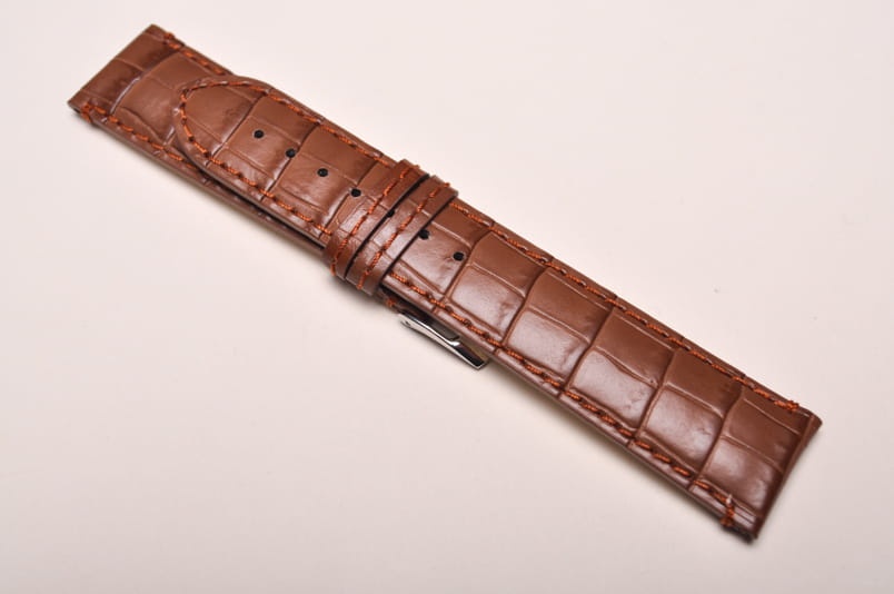 Wykonany ze skóry naturalnej tłoczonej na wzór skóry aligatora. Matowy. Obszyty nicią w kolorze paska. Podwójna szlufka. Stalowa klamerka. Grubość paska 3mm. Bardzo dobrze komponuje się z większymi zegarkami zarówno klasycznymi jak i sportowymi.