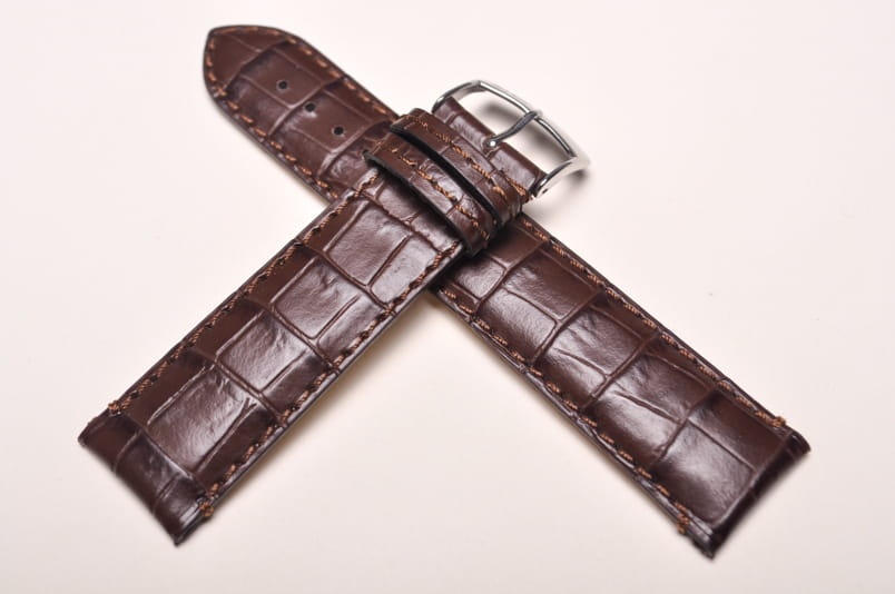 Wykonany ze skóry naturalnej tłoczonej na wzór skóry aligatora. Matowy. Obszyty nicią w kolorze paska. Podwójna szlufka. Stalowa klamerka w kolorze srebrnym. Grubość paska 3mm. Bardzo dobrze komponuje się z większymi zegarkami zarówno klasycznymi jak i sportowymi.