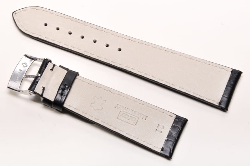 Wykonany ze skóry naturalnej tłoczonej na wzór skóry aligatora. Matowy. Obszyty nicią w kolorze paska. Podwójna szlufka. Stalowa klamerka. Grubość paska 3mm. Bardzo dobrze komponuje się z większymi zegarkami zarówno klasycznymi jak i sportowymi.