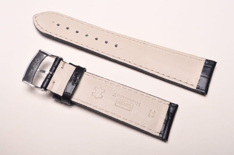 Wykonany ze skóry naturalnej tłoczonej na wzór skóry aligatora. Matowy i miękki. Obszyty białą nicią. Podwójna szlufka. Stalowa klamerka. Grubość paska 3mm. Bardzo dobrze komponuje się z większymi zegarkami zarówno klasycznymi jak i sportowymi.