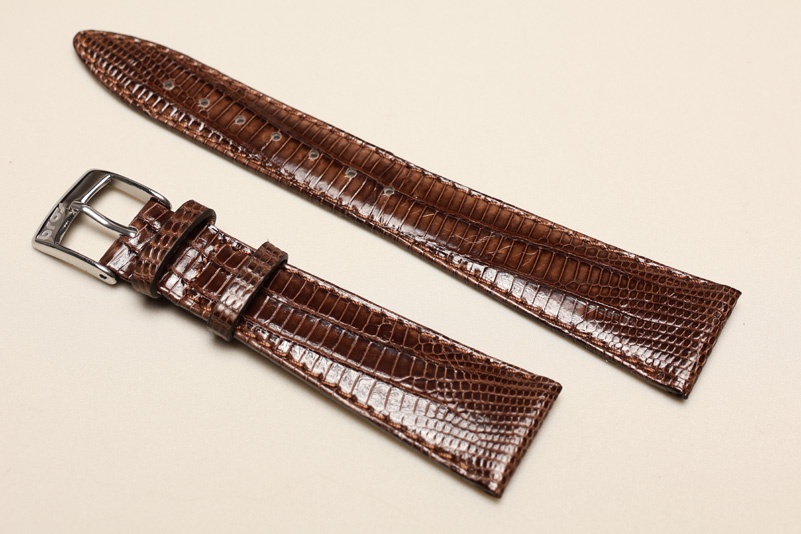 Pasek Bros 8219, Skóra z jaszczurki Tejus, Brązowy, 20mm