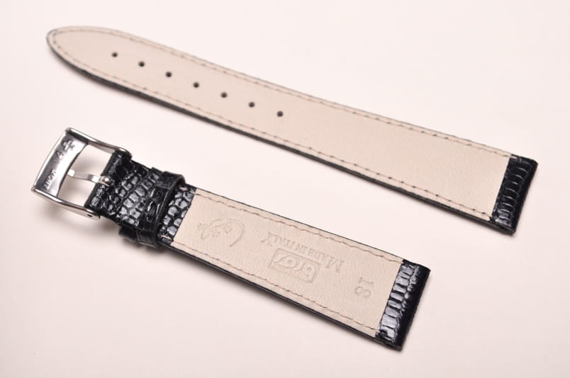 Pasek Bros 8229, Skóra z jaszczurki, Czarny, 18mm