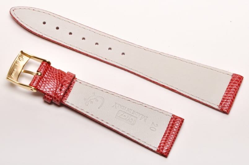 Pasek Bros 8229, Skóra z jaszczurki, Czerwony, 20mm