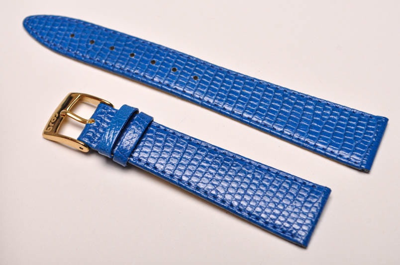 Pasek Bros 8229, Skóra z jaszczurki, Niebieski, 18mm