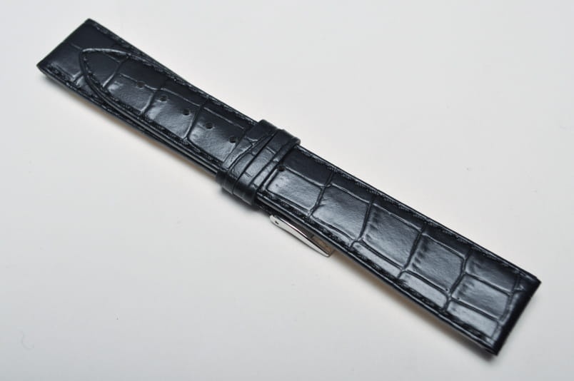 Wykonany ze skóry naturalnej tłoczonej na wzór skóry aligatora. Półmat. Delikatnie pogrubiany do 3,2mm. Obszyty szarą nicią. Podwójna szlufka. Stalowa klamerka. Klasyczny, elegancki pasek.