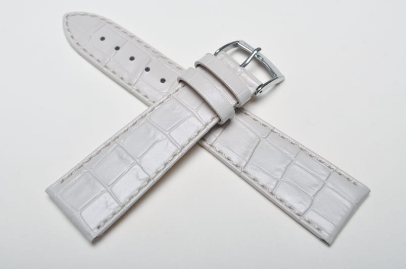 Wykonany ze skóry naturalnej tłoczonej na wzór skóry aligatora. Półmat. Delikatnie pogrubiany do 2,6mm. Obszyty nicią pod kolor paska. Podwójna szlufka. Stalowa klamerka. Klasyczny, elegancki pasek.