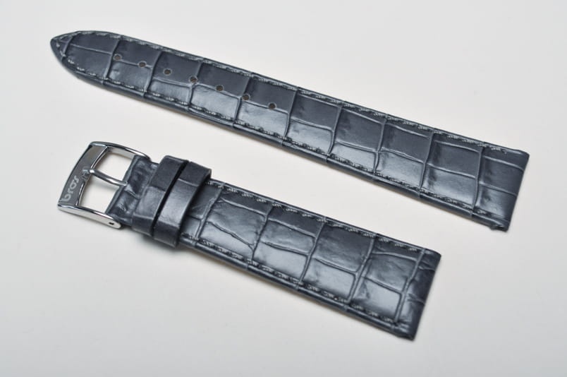 Wykonany ze skóry naturalnej tłoczonej na wzór skóry aligatora. Półmat. Delikatnie pogrubiany do 3,2mm. Obszyty nicią pod kolor paska. Podwójna szlufka. Stalowa klamerka. Klasyczny, elegancki pasek.