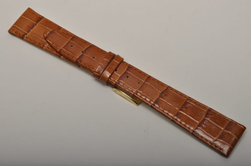 Pasek włoskiej firmy Bros. Uszyty z naturalnej skóry tłoczonej na wzór skóry aligatora. Przeszycie w kolorze paska. Miękki i cienki. Z delikatnym połyskiem. Podwójna szlufka. Stalowa klamerka.