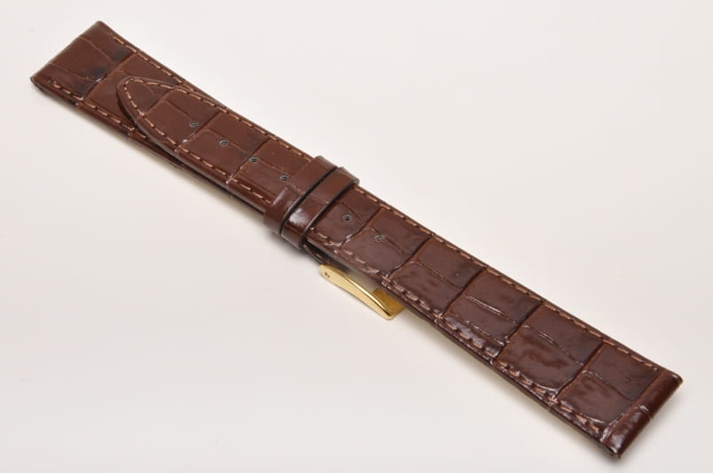 Pasek włoskiej firmy Bros. Uszyty z naturalnej skóry tłoczonej na wzór skóry aligatora. Przeszycie w kolorze paska. Miękki i cienki. Z delikatnym połyskiem. Podwójna szlufka. Stalowa klamerka.