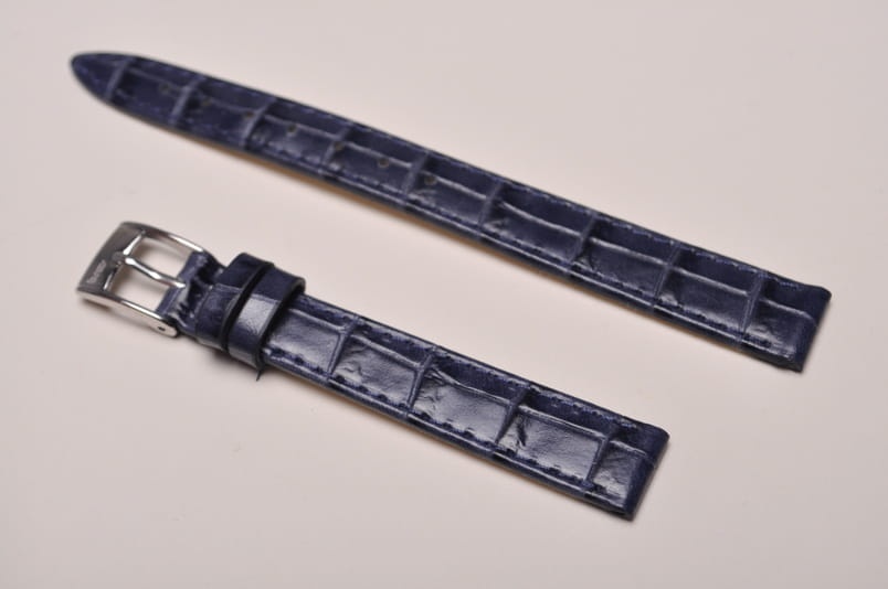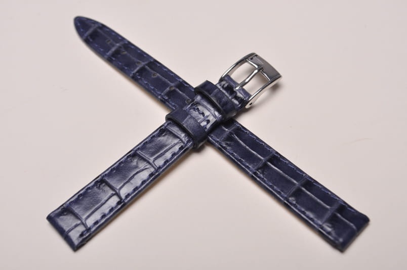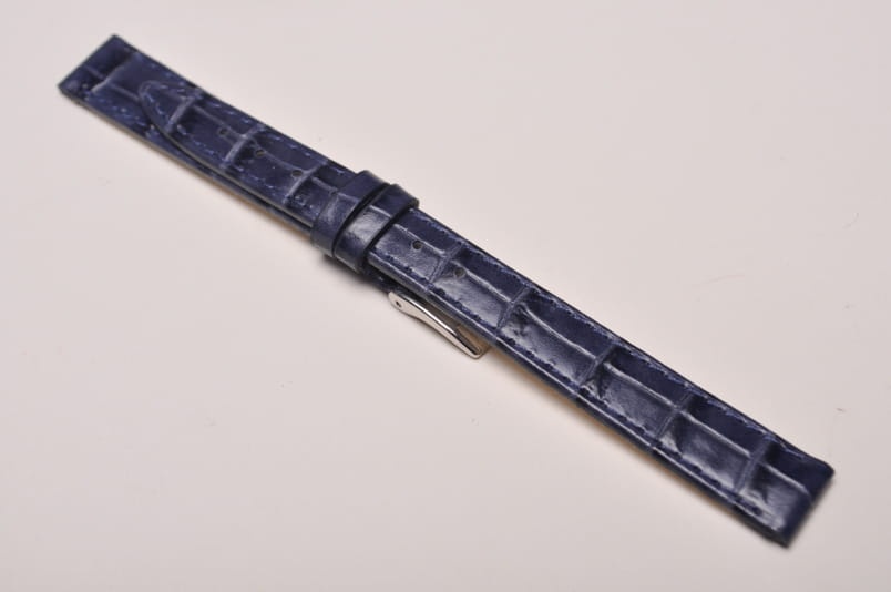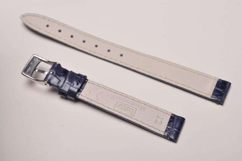 Pasek włoskiej firmy Bros. Uszyty z naturalnej skóry tłoczonej na wzór skóry aligatora. Przeszycie w kolorze paska. Miękki i cienki. Z delikatnym połyskiem. Podwójna szlufka. Stalowa klamerka.
