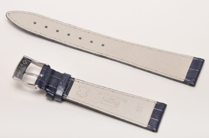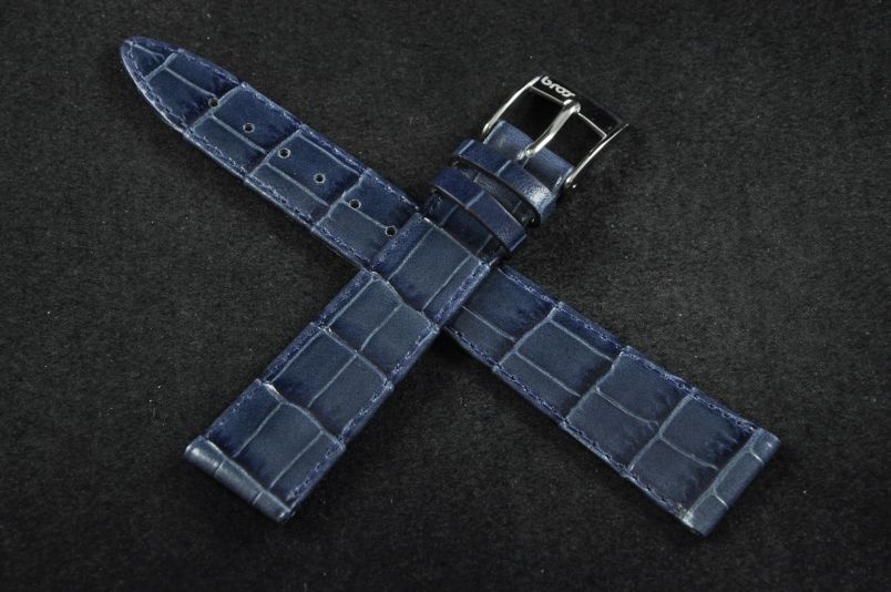 Pasek włoskiej firmy Bros. Uszyty z naturalnej skóry tłoczonej na wzór skóry aligatora. Przeszycie w kolorze paska.