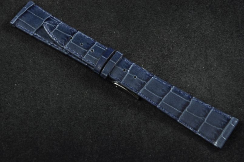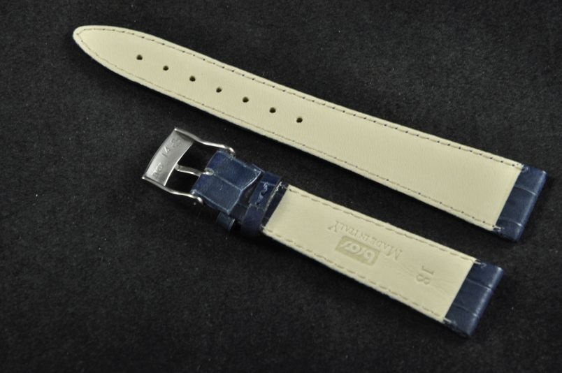 Pasek Bros 8449, Skóra naturalna, Granatowy, 18mm