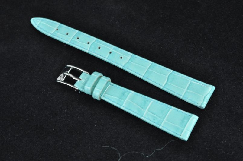 Pasek włoskiej firmy Bros. Uszyty z naturalnej skóry tłoczonej na wzór skóry aligatora. Przeszycie w kolorze paska. Miękki i cienki. Z delikatnym połyskiem. Podwójna szlufka. Stalowa klamerka.