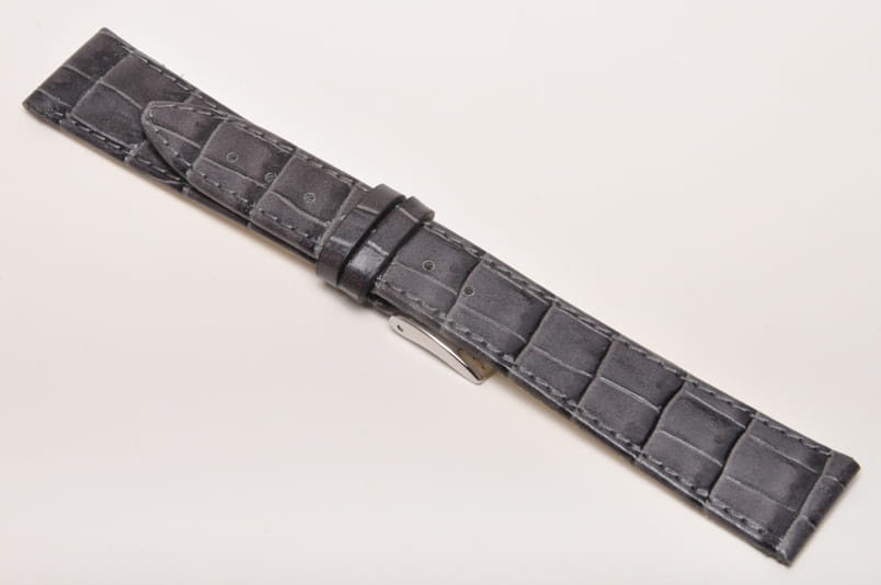 Pasek włoskiej firmy Bros. Uszyty z naturalnej skóry tłoczonej na wzór skóry aligatora. Przeszycie w kolorze paska. Miękki i cienki. Z delikatnym połyskiem. Podwójna szlufka. Stalowa klamerka.