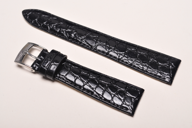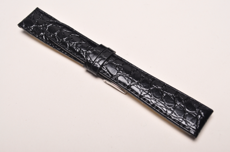 Wykonany ze skóry naturalnej na wzór skóry krokodyla. Delikatny połysk Obszyty czarną nicią. Klamerka 16 mm. Podwójna szlufka. Stalowa klamerka w kolorze złotym. Grubość paska 2,5 mm. Pasek do markowych zegarków, za rozsądną cenę, z możliwością wymiany klamerki na oryginalną.