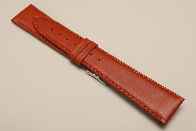 Pasek Bros 8541, Skóra naturalna, Brązowy kasztanowy, 18mm