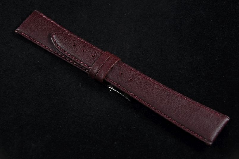 Pasek Bros 8541, Skóra naturalna, Wiśniowy, 18mm