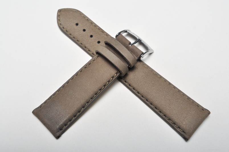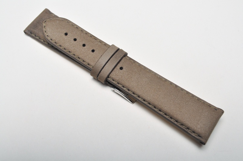 Do zegarków z mocowaniem 24mm. Uszyty z naturalnej skóry typu nubuk. Pogrubiony do 4mm. Przeszyty szarą nicią. Podwójna szlufka, stalowa klamerka.