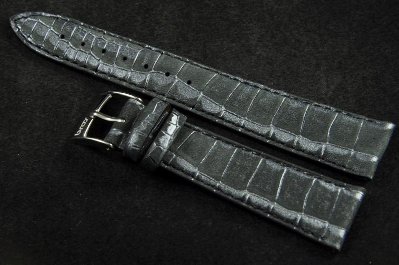 Wykonany ze skóry naturalnej tłoczonej na wzór skóry aligatora. Matowe wykończenie z ciekawym perłowym połyskiem. Obszyty nicią w kolorze paska. Podwójna szlufka. Stalowa klamerka.
