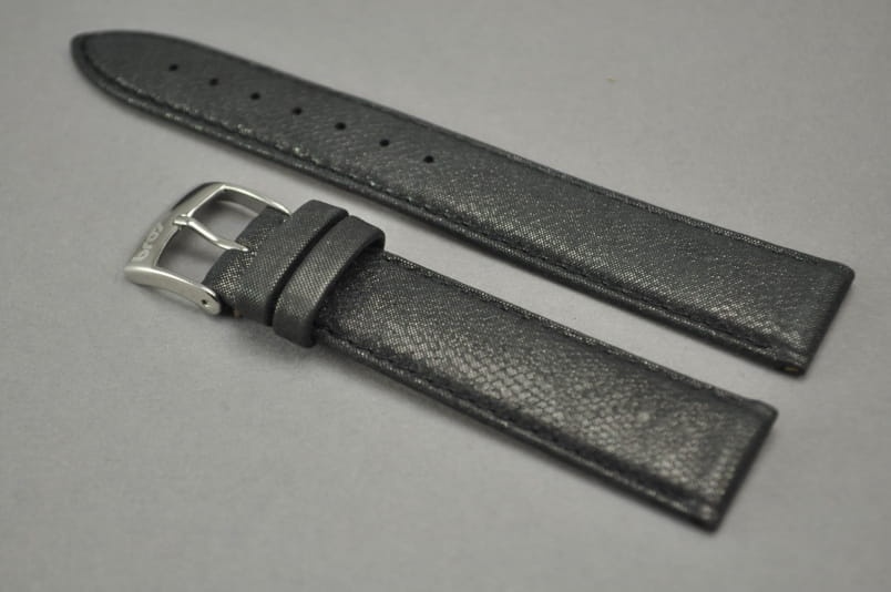 Wykonany ze skóry naturalnej z delikatnym wzorkiem typu satyna. Matowe wykończenie skóry z ciekawym perłowym połyskiem. Obszyty nicią w kolorze paska. Podwójna szlufka. Stalowa klamerka.