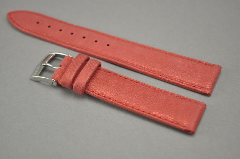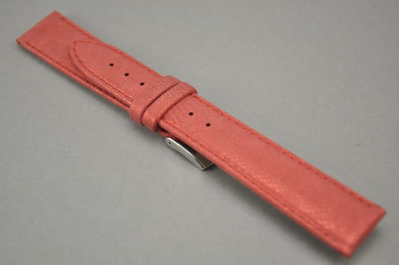 Wykonany ze skóry naturalnej z delikatnym wzorkiem typu satyna. Matowe wykończenie skóry z ciekawym perłowym połyskiem. Obszyty nicią w kolorze paska. Podwójna szlufka. Stalowa klamerka.