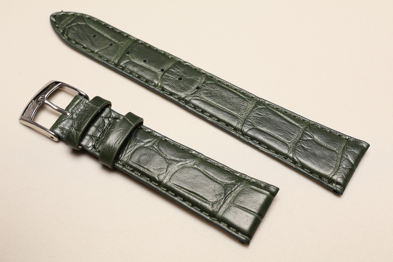 Pasek Bros 8803, Skóra z aligatora, Zielony, 18mm