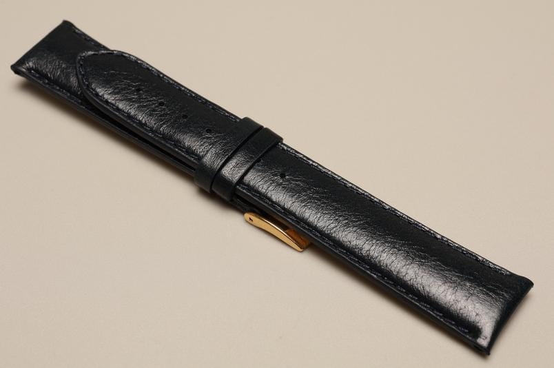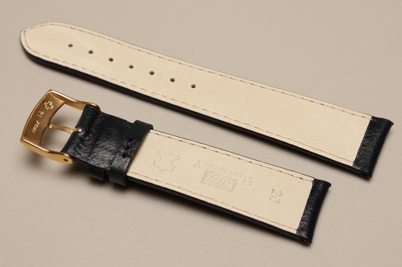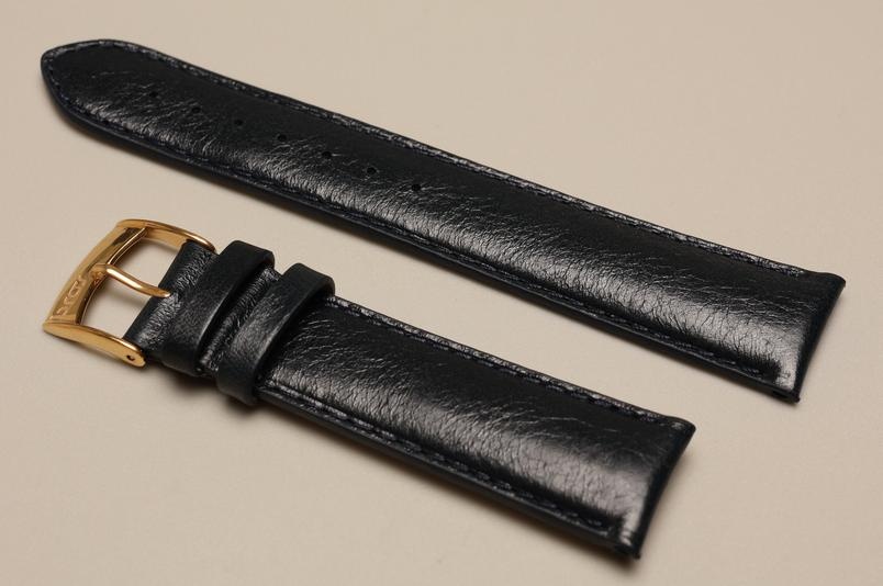 Oryginalny pasek włoskiej firmy Bros. Wykonany z naturalnej skóry o fakturze skóry koziej, z połyskiem. Bardzo miękki, przeszywany nicią w kolorze paska. Pogrubiany przy zegarku do 4,2mm, przy zapięciu 2,8mm grubości. Podwójna szlufka, stalowa klamerka. Pięknie wykończony, klasyczny, elegancki pasek